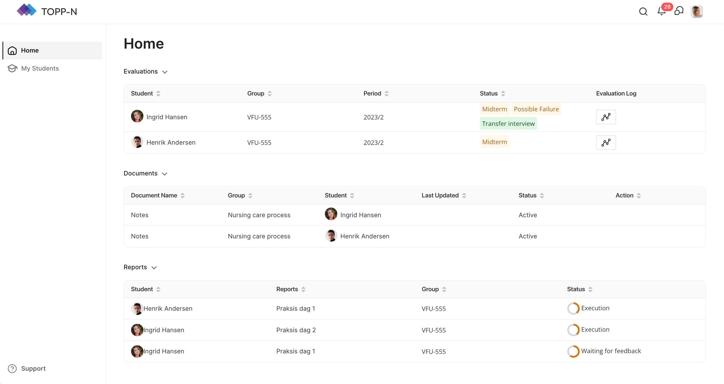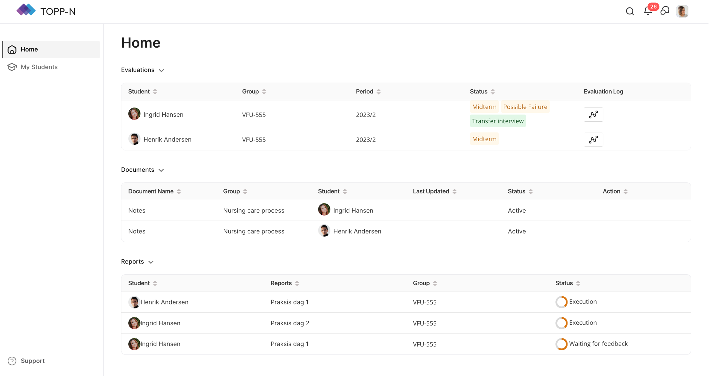 Rapporter: Effektivisera granskningen av studenternas dagliga rapporter. Rapportdelen möjliggör för dig att bedöma och ge feedback på studenternas prestationer på ett effektivt sätt och främja därmed effektiv kommunikation och stöd.