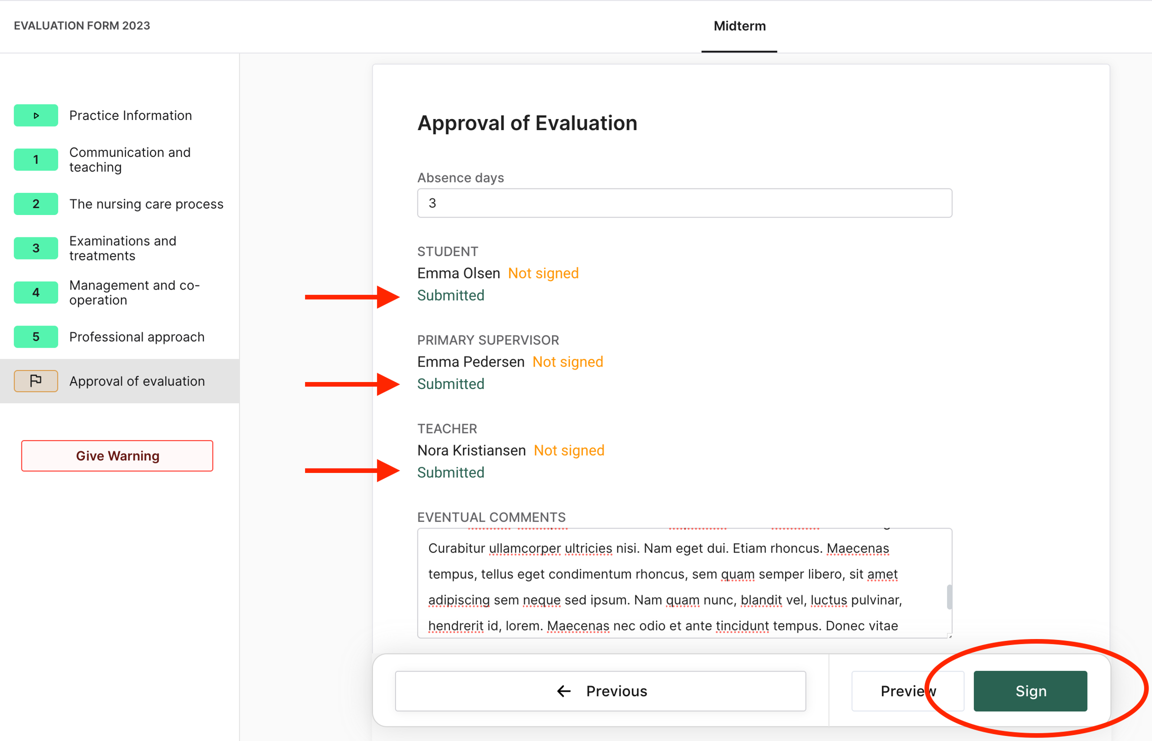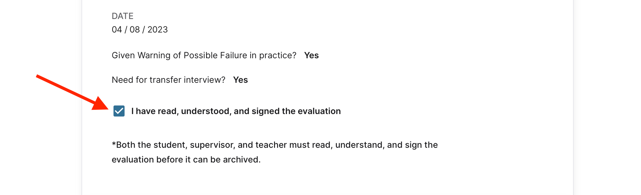 Markera i kryssrutan märkt 'Jag har läst, förstått och signerat bedömningen.'