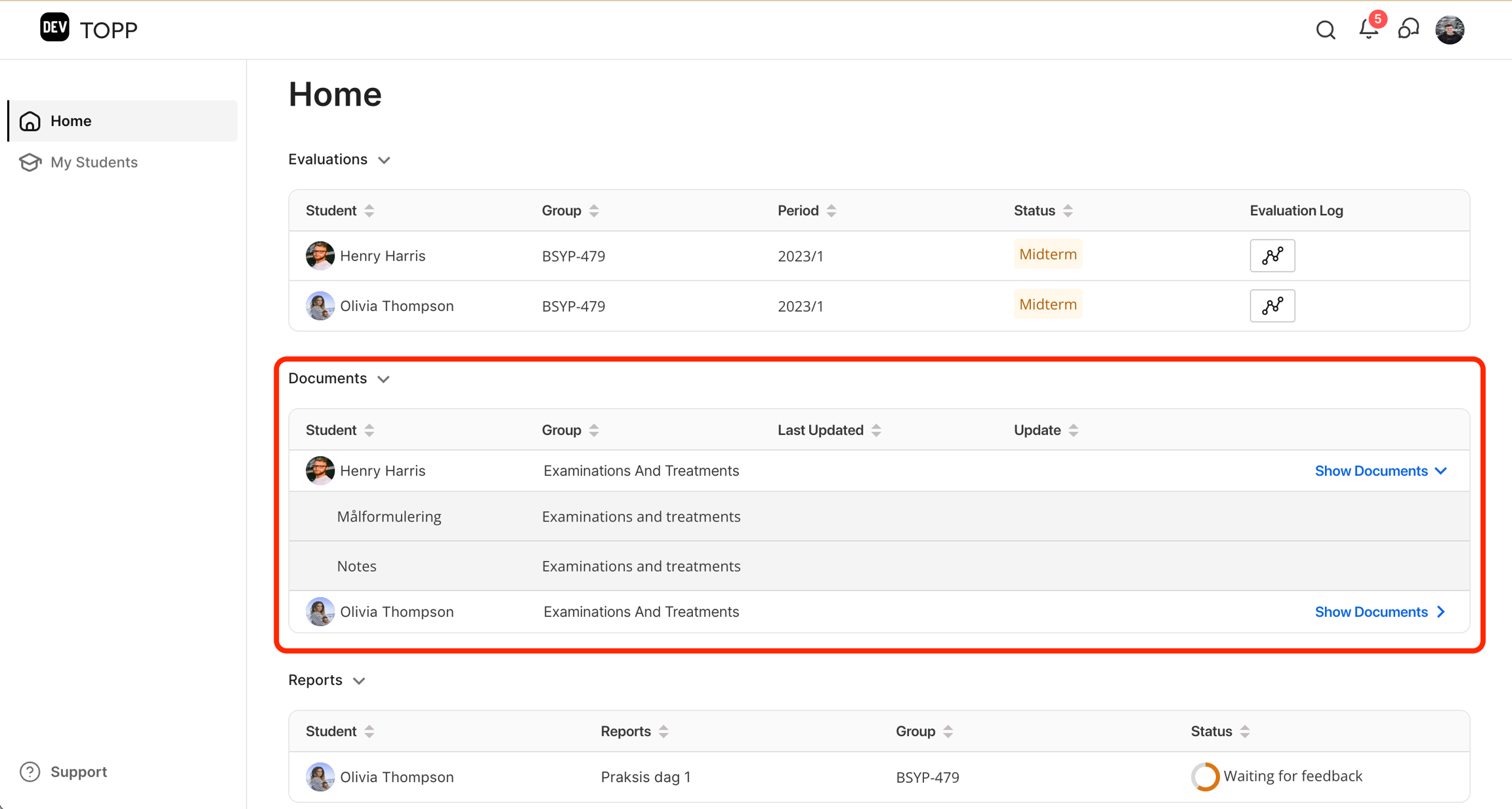 Denna strömlinjeformade process gör det möjligt för handledare att effektivt hantera och granska dokument relaterade till varje student, och säkerställer snabb och enkel tillgång till nödvändigt material.