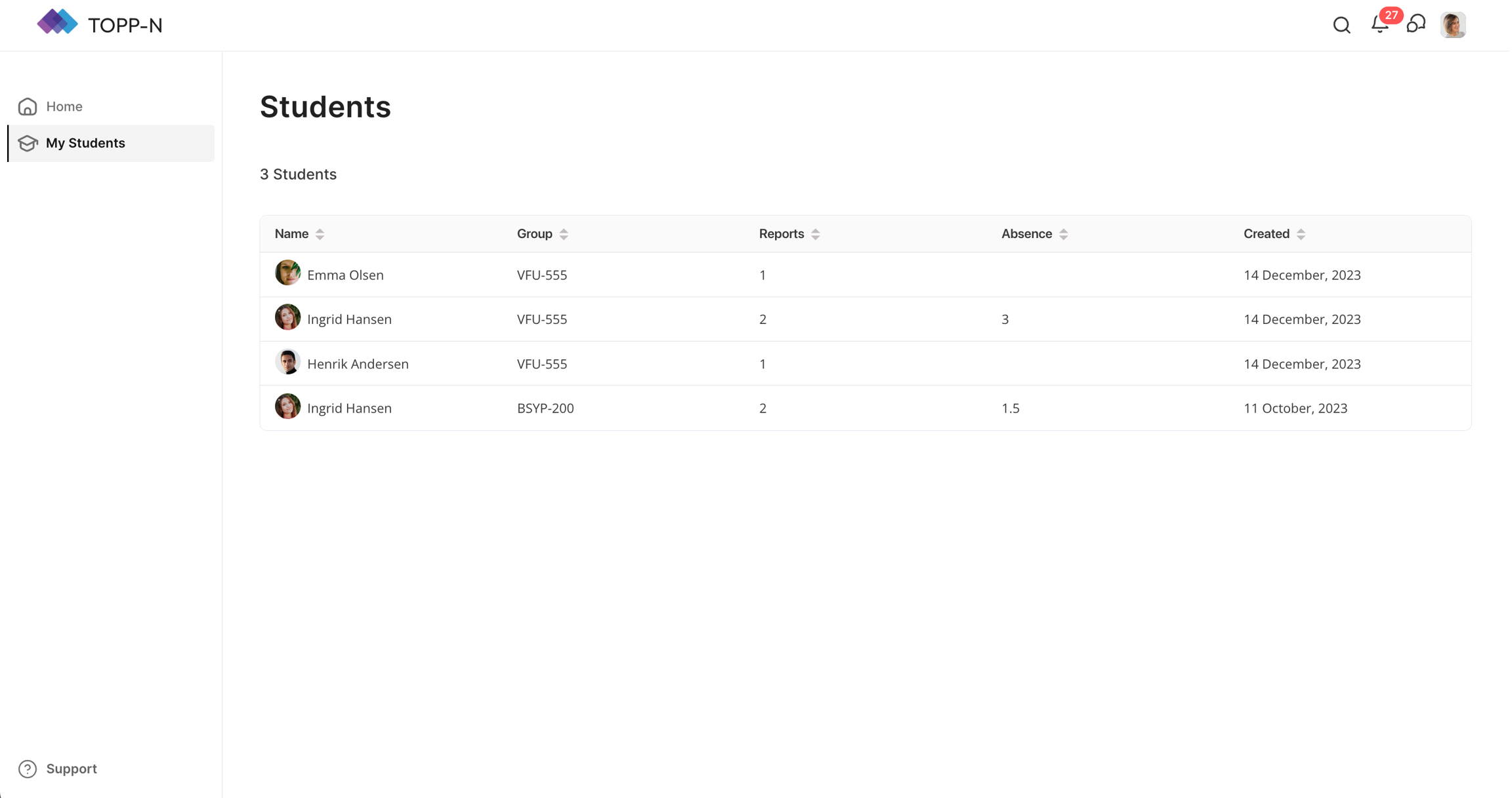 Den här fliken fungerar som en central knutpunkt för lärare att navigera och effektivt hantera sina studenter, vilket säkerställer en sömlös och organiserad upplevelse av att övervaka studenters prestationer och relaterad information.