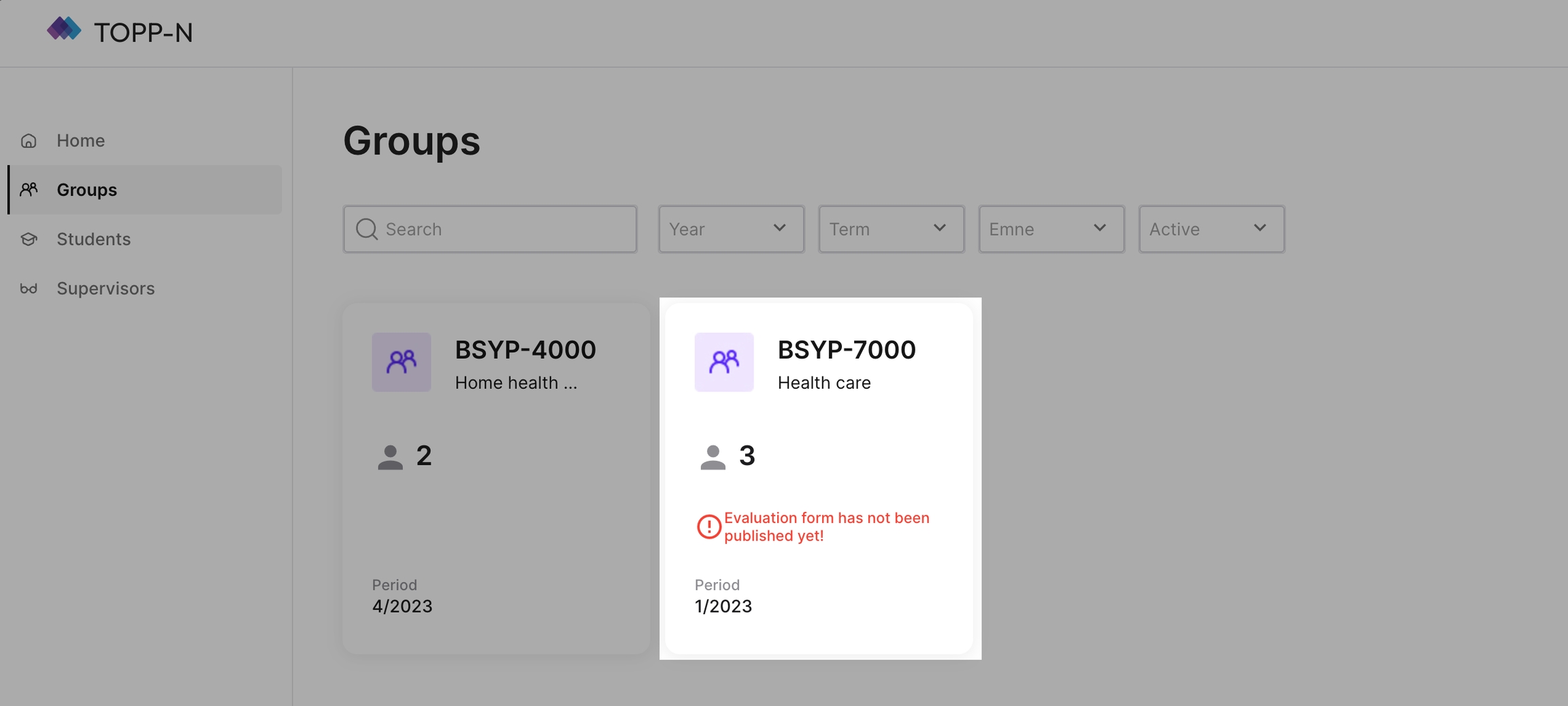 Se statusendringen fra 'Ikke publisert' til 'Publisert,' noe som indikerer at rapporten er tilgjengelig for alle gruppedeltakere.