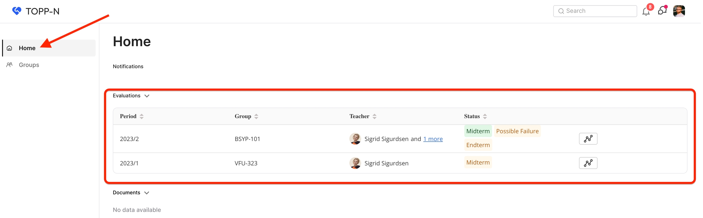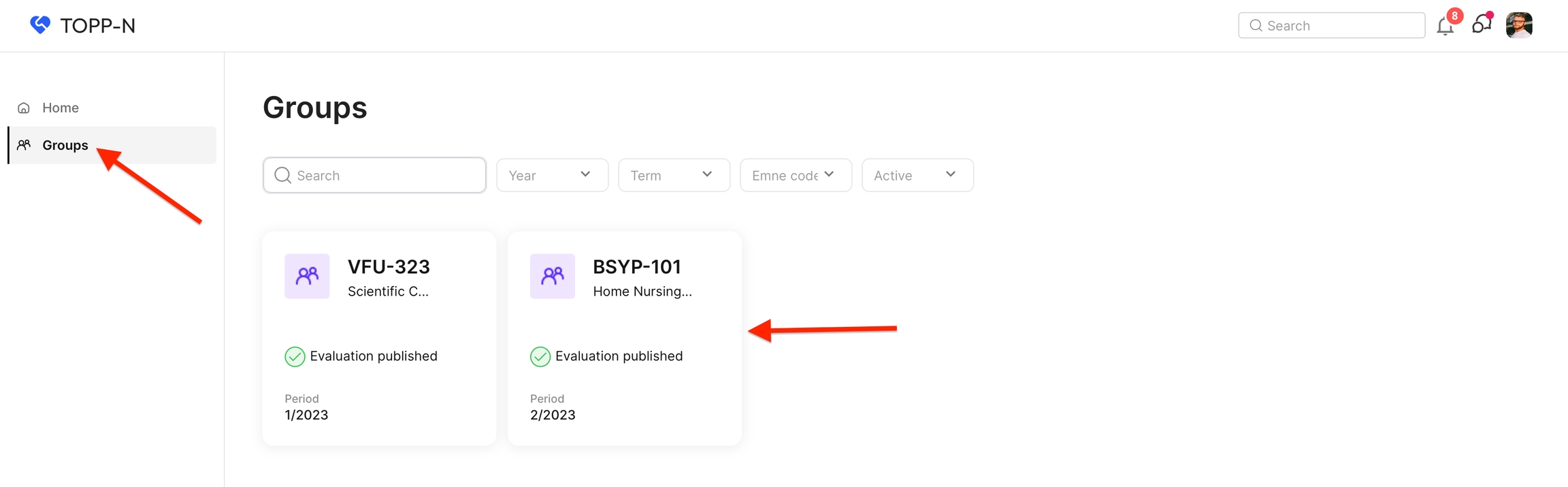 På Grupper-sidan ser du en lista över de grupper du undervisar i eller är kopplad till.