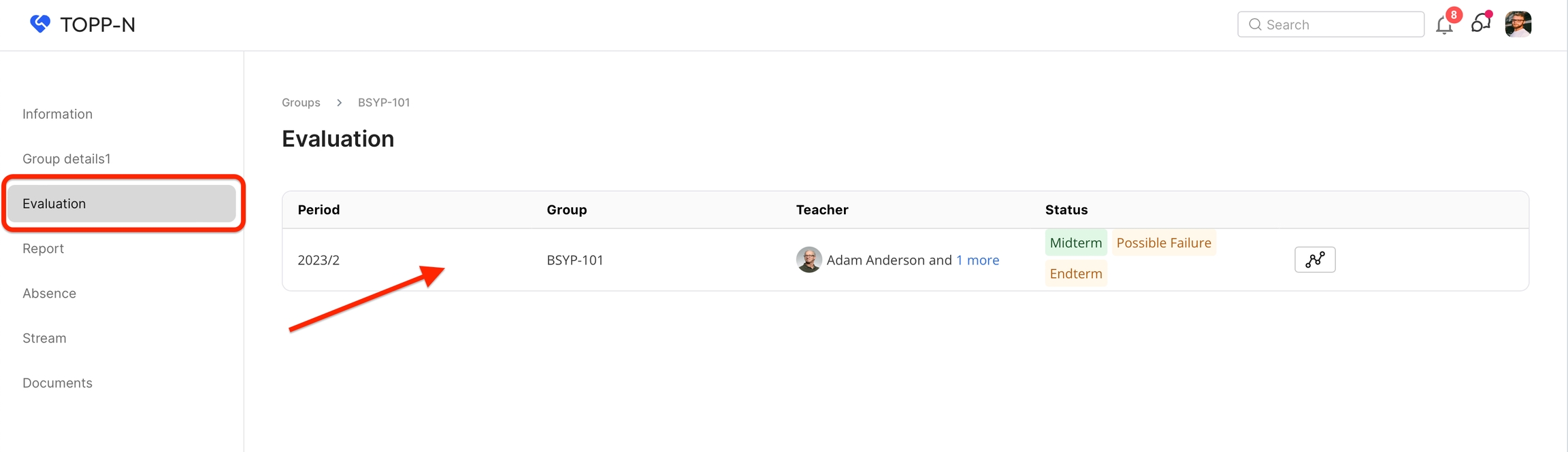 Inuti den valda gruppen klickar du på fliken "Bedömningar" i sidofältet.