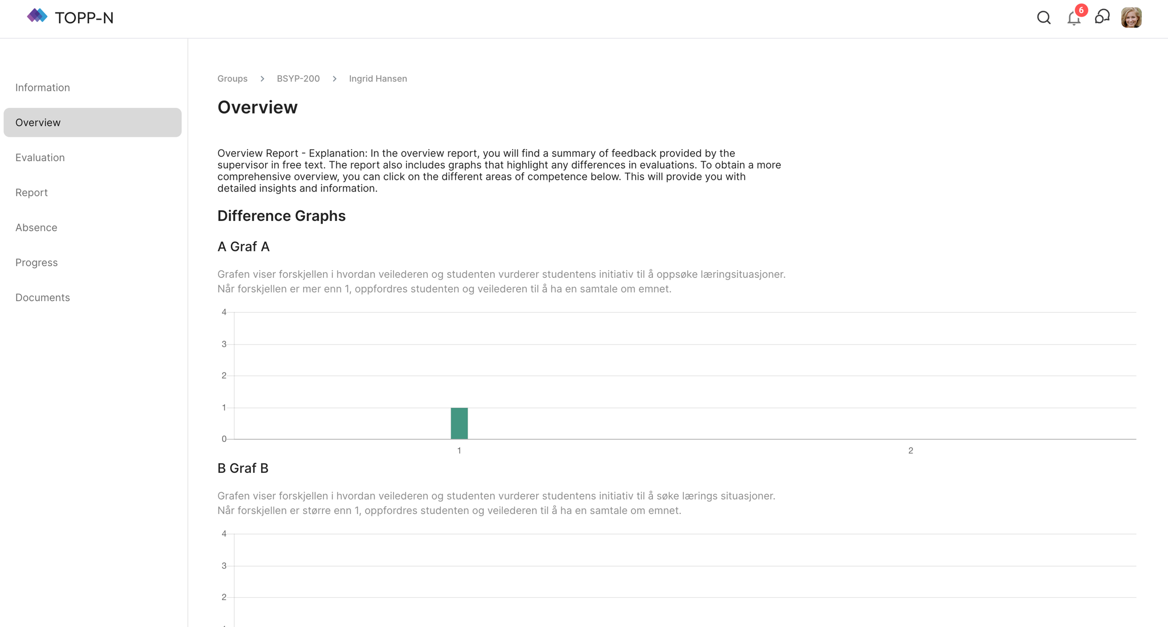 Denne Oversikt-delen forbedrer lærerens evne til å vurdere en students engasjement, fremgang og konsistens, og bidrar til en mer informert og datadrevet forståelse av studentens praktiske erfaringer.