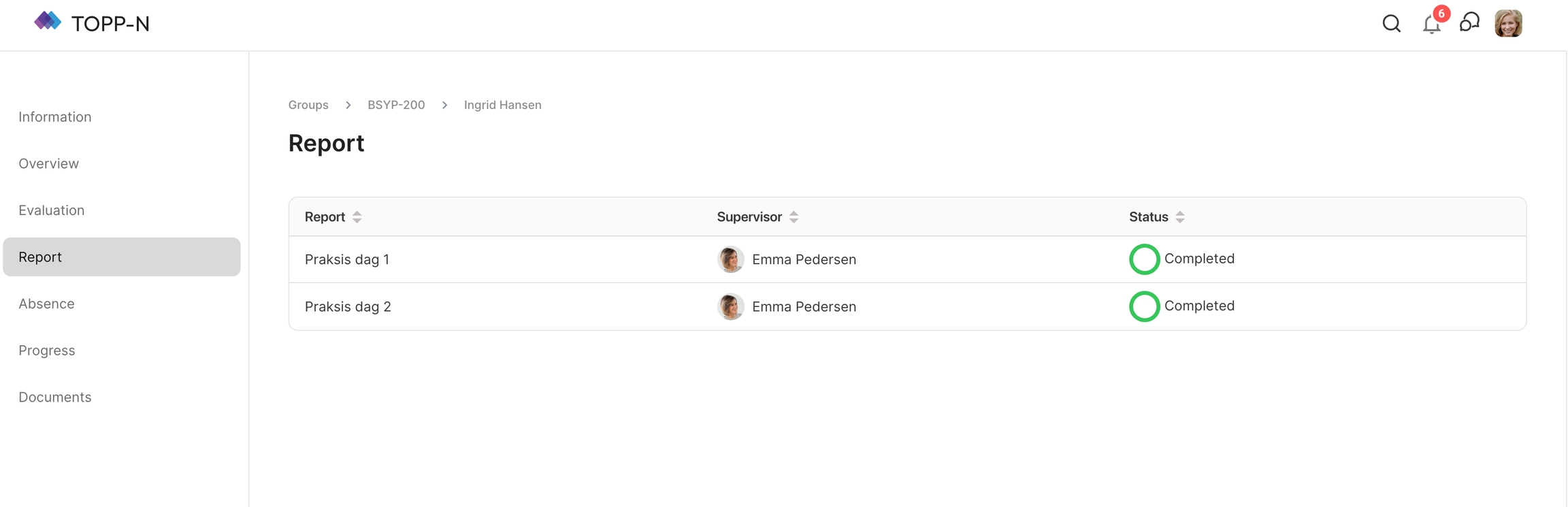 By clicking on a specific report, teachers can delve into the details, gaining access to the student's performance in the report. This includes the student's planned tasks, executed activities, feedback from the supervisor, and the message history during the report period.