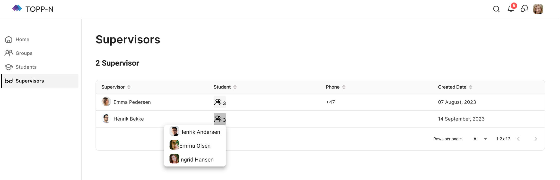 Vis informasjon om hvilke studenter som er tilordnet hver veileder, og gi gjennomsiktighet om veileder-student-relasjonene.