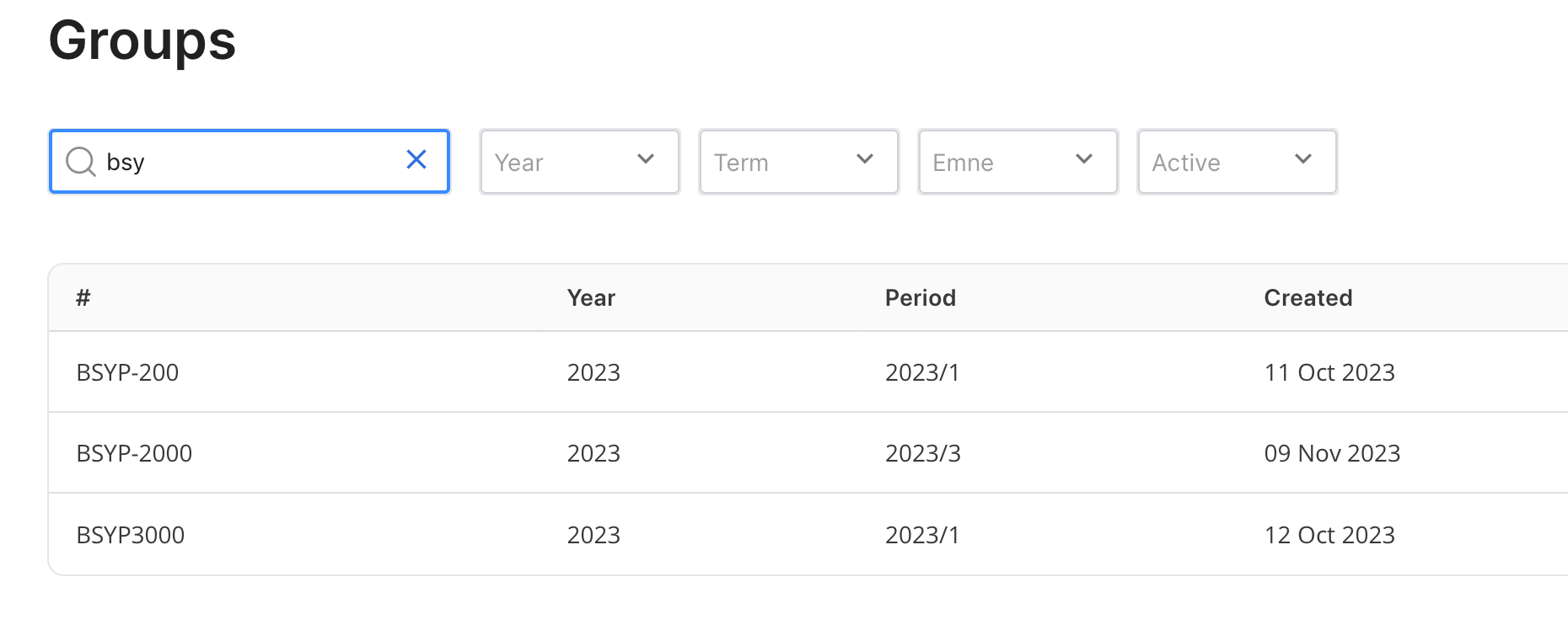 Medan du skriver kommer sökresultaten att uppdateras dynamiskt, vilket gör det lättare att hitta den exakta gruppen du letar efter. Sökfunktionen sträcker sig över både aktiva och avslutade grupper.