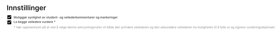 "Möjliggör synlighet av student- och handledarkommentarer och markeringar" (Ej markerad):
