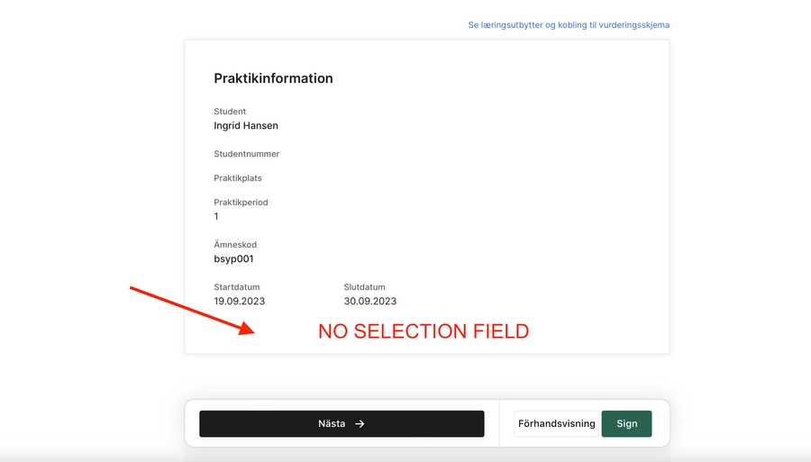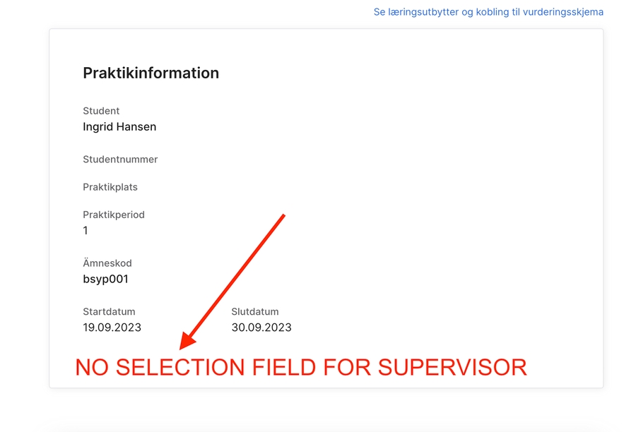 Handledaren kan inte se studentens bedömning och kommentar.