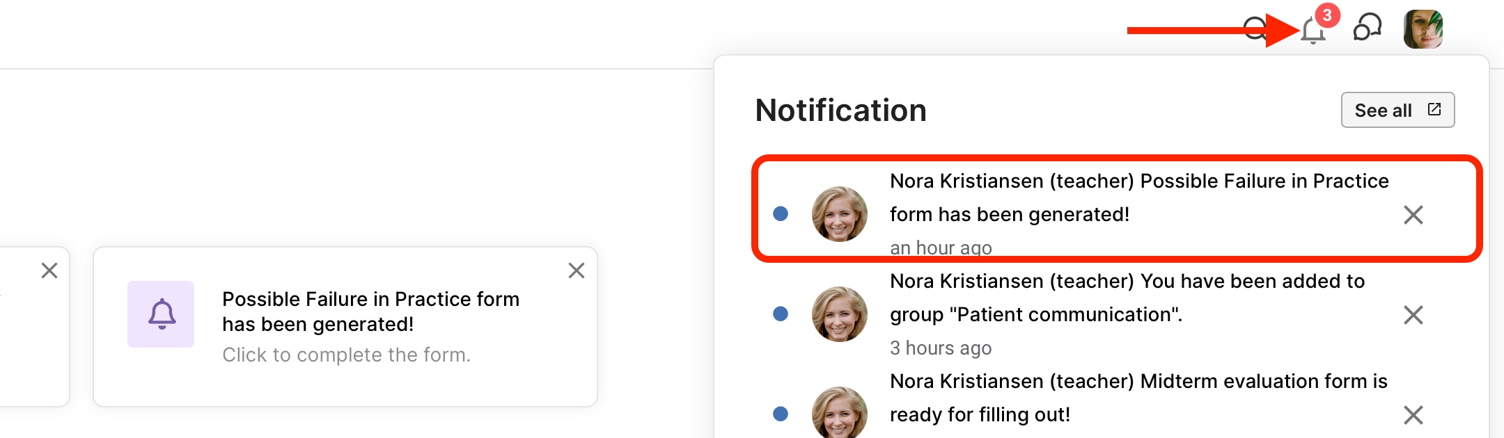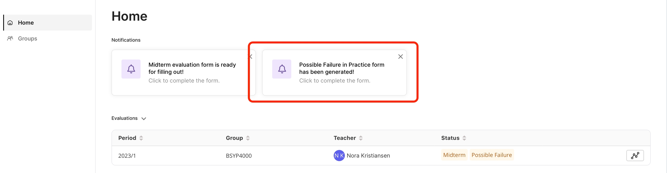 När det inträffar: Om din praktiklärare under bedömningen identifierar områden där din prestation kan förbättras för att uppfylla nödvändiga standarder, kan de starta varningen om "Risk för icke godkänd praktik".