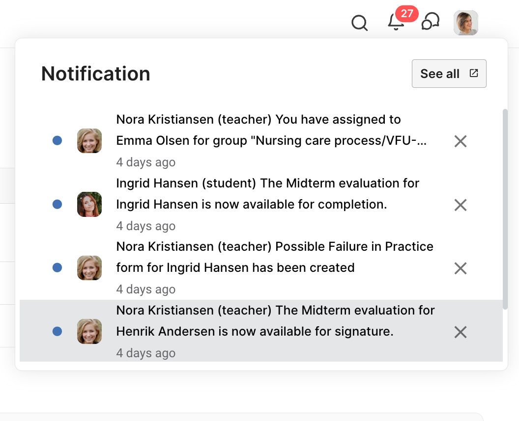 Klikk på varselsikonet som ligger øverst til høyre på skjermen.
